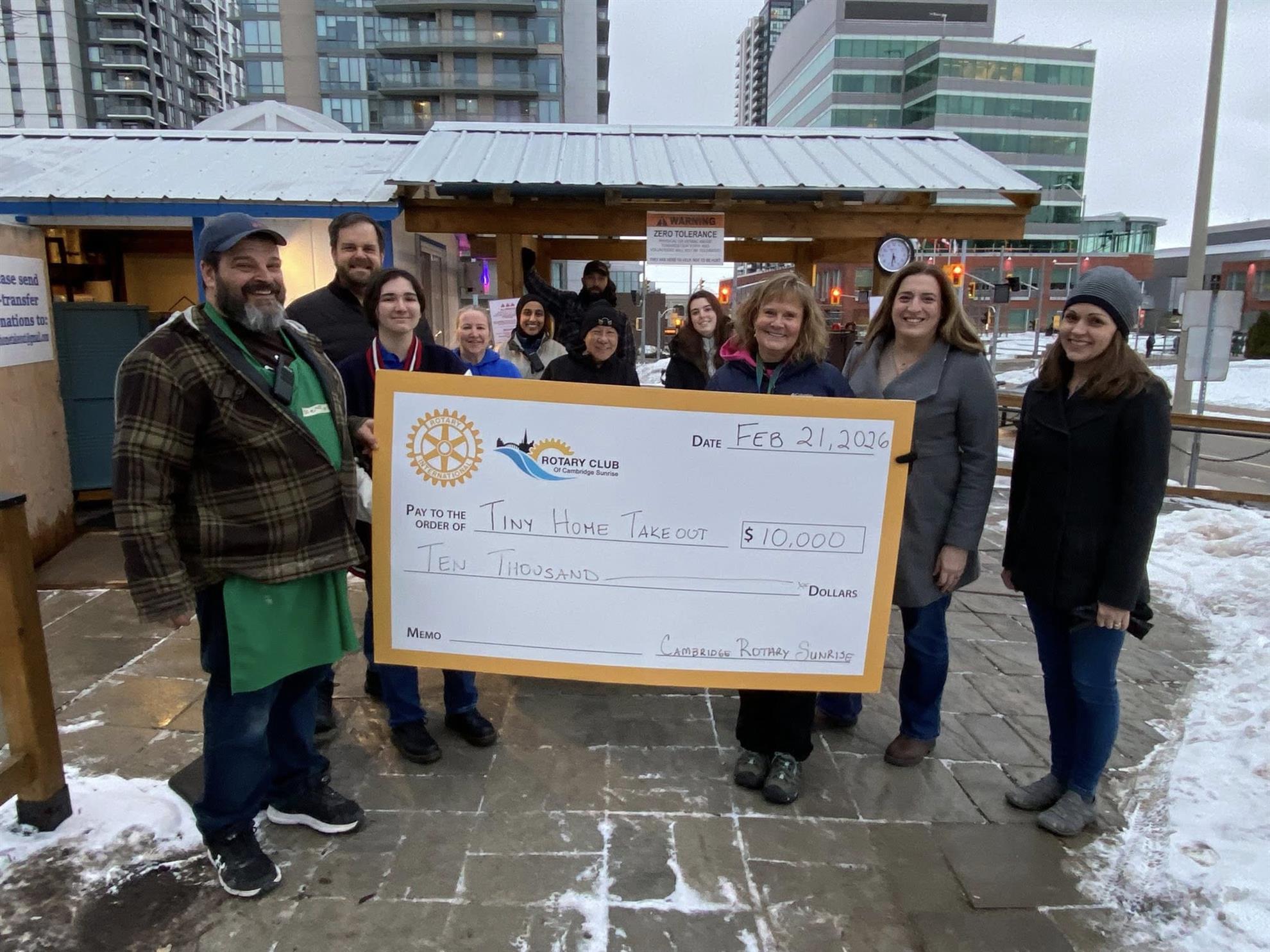 In February 2026, Rotary Cambridge Sunrise had the absolute joy of surprising our friends at Tiny Home Takeout with a cheque for $10,000 - and their reaction was priceless! Tiny Home Takeout has been serving our community with heart, dignity, and delicious food, ensuring everyone has access to a warm meal no matter their circumstances. We’re so proud to support the incredible impact they make every single day.